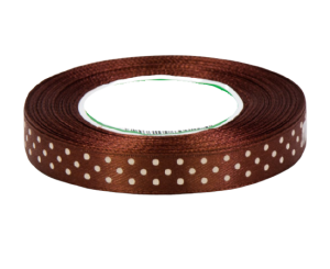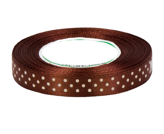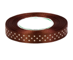 WSTĄŻKA SATYNOWA 12mm BRĄZOWA w białe kropki 22m