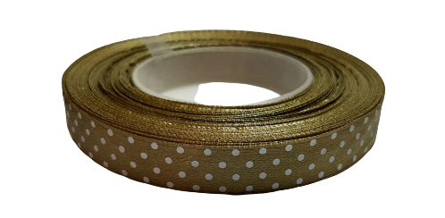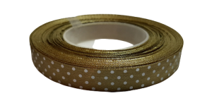 WSTĄŻKA SATYNOWA AKSA 12mm CIEMNA OLIWKA 6127 w białe kropki 22m