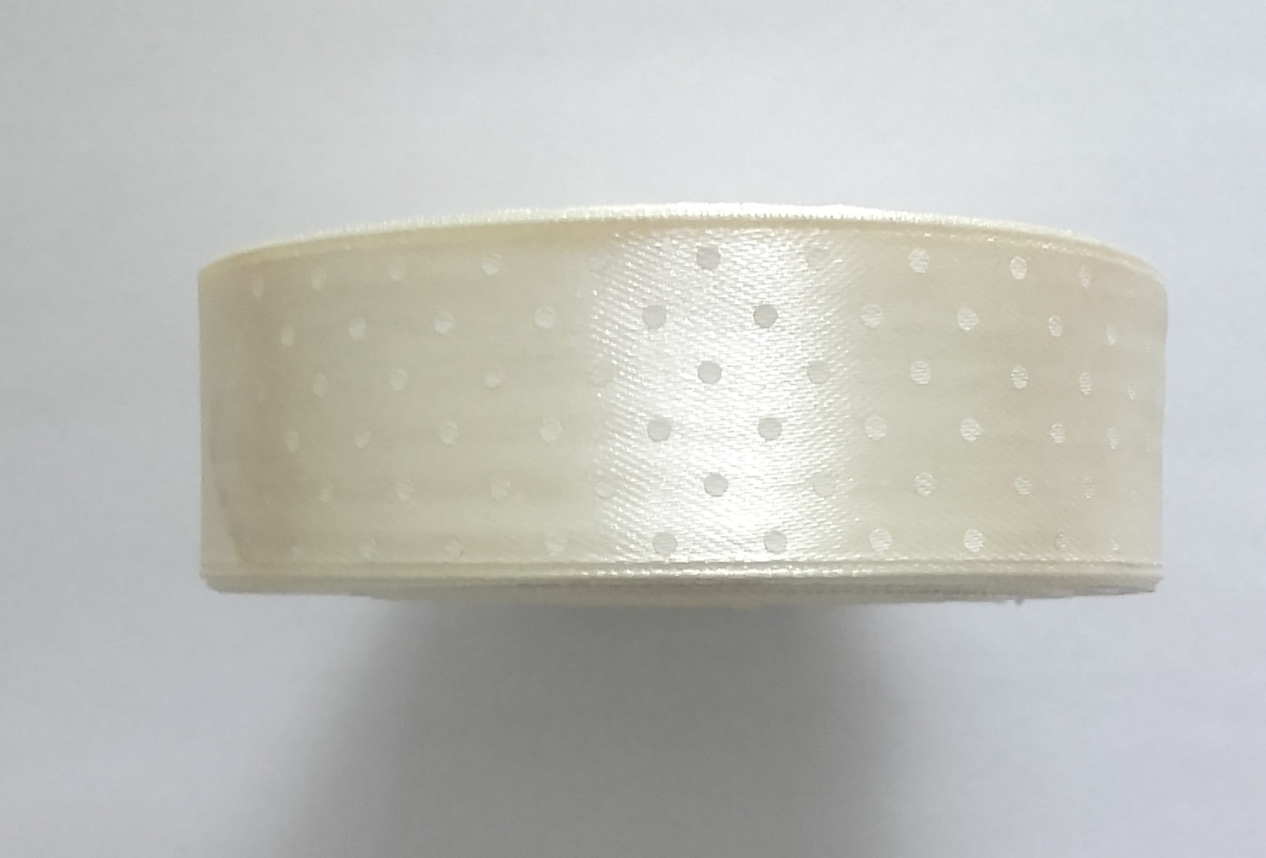 WSTĄŻKA SATYNOWA AKSA 25mm KREMOWA 6004 w białe kropki 22m