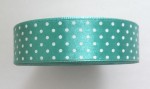 WSTĄŻKA SATYNOWA AKSA 25mm MORSKA, MORSKI 6066 w białe kropki 22m Tasiemka w groszki