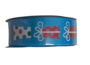 Wstążka rypsowa błękitna z kolorowym nadrukiem