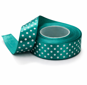 Wstążka satynowa 25 mm w kropki – zielony 22 m
