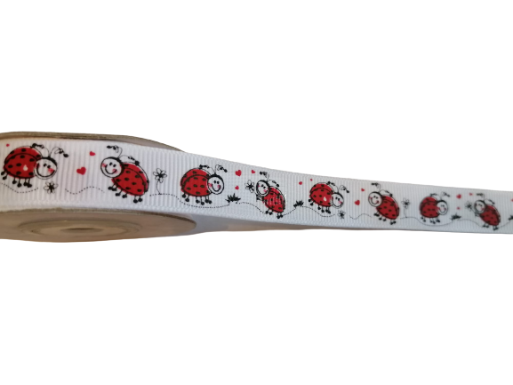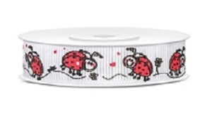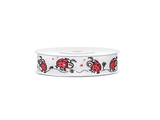 Wstążka rypsowa w biedronki 15 mm x 10 m Tasiemka 1,5 cm z nadrukiem biedronka
