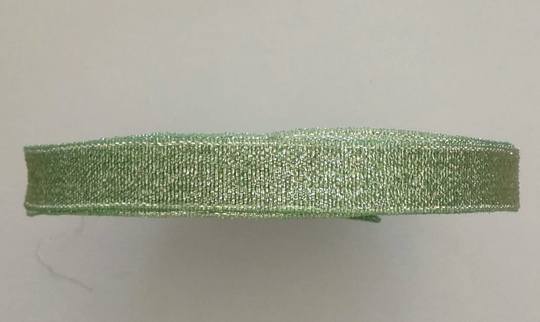 Wstążka tasiemka brokatowa 12mm SELEDYNOWA + SREBRNA 32m nr 08