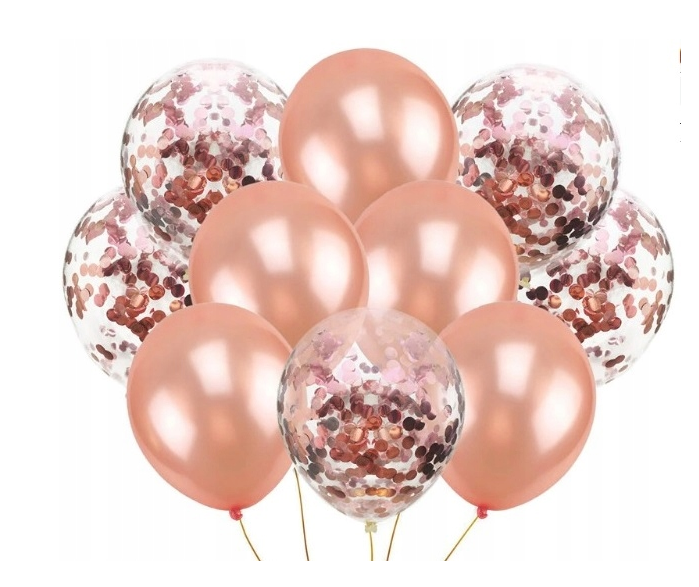 ZESTAW 10szt balonów, 5x balony ROSE GOLD, 5x balony transparentne z ROSE GOLD KONFETTI