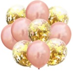 5 szt BALONÓW METALIZOWANYCH W KOLORZE ROSE GOLD (różowe złoto) oraz 5 szt TRANSPARENTNYCH ZE ZŁOTYM KONFETTI