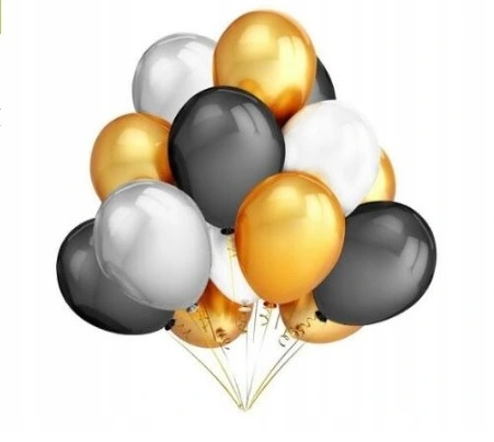 ZESTAW 20szt BALONÓW: ZŁOTE, CZARNE, BIAŁE, SREBRNE