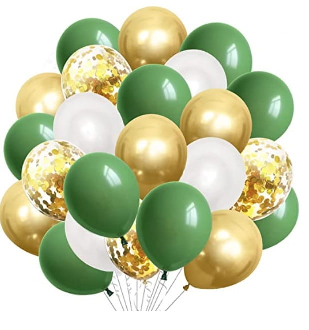 ZESTAW BALONÓW 25szt mix, ZŁOTE + BIAŁE + BUTELKOWA ZIELEŃ