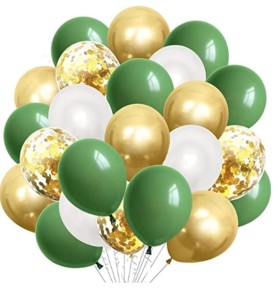 ZESTAW 25szt balonów balony ZŁOTE, BIAŁE, BUTELKOWA ZIELEŃ matowe, chromowane, konfetti 25szt