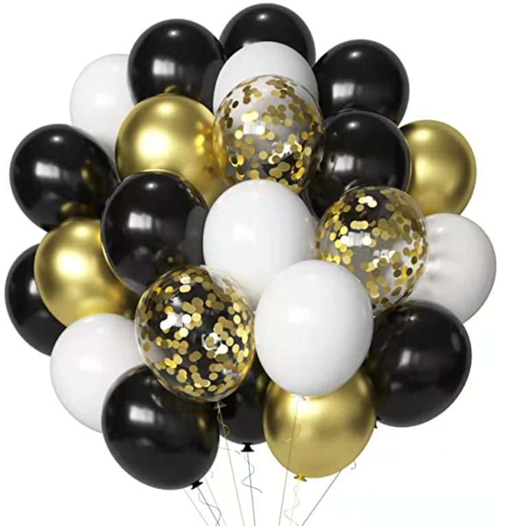ZESTAW 25szt balonów balony ZŁOTE-CZARNE-BIAŁE metalizowane, chromowane, pastelowe, konfetti 25szt