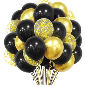 ZESTAW 30 szt BALONÓW 10x balony CZARNE, 10x balony ze ZŁOTYM KONFETTI, 10x balony ZŁOTE CHROMOWANE