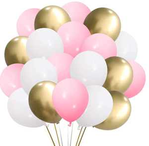 ZESTAW 30szt BALONÓW 10x balony BIAŁE pastelowe, 10x balony NEONOWY RÓŻ PASTELOWE, 10x ZŁOTE CHROMOWANE