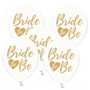 Balony transparentne, z złotym nadrukiem BRIDE TO BE - 5szt