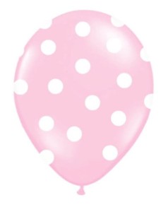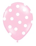 Balony pudrowy róż pastelowe, z nadrukiem białych kropek - 5szt