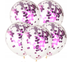 ZESTAW 5szt balonów z AMARANTOWYM KONFETTI Balony z ciemnoróżowym konfetti