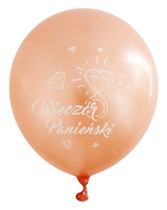 Balony metalizowane ROSE GOLD, z nadrukiem WIECZÓR PANIEŃSKI + pierścionek w kolorze białym - 6szt