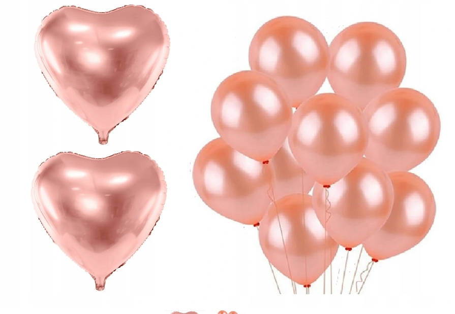 ZESTAW BALONÓW ROSE GOLD, Balony rose gold (różowe złoto) + serca - 22szt na ślub, wesele, komunię, chrzciny, panieński, urodziny
