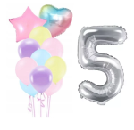 - balon foliowy cyfra "5" w kolorze srebrnym -ok. 100 cm
