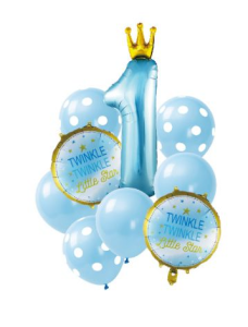ZESTAW BALONÓW na Roczek dla chłopca Niebiekie 9szt balony 1 urodziny