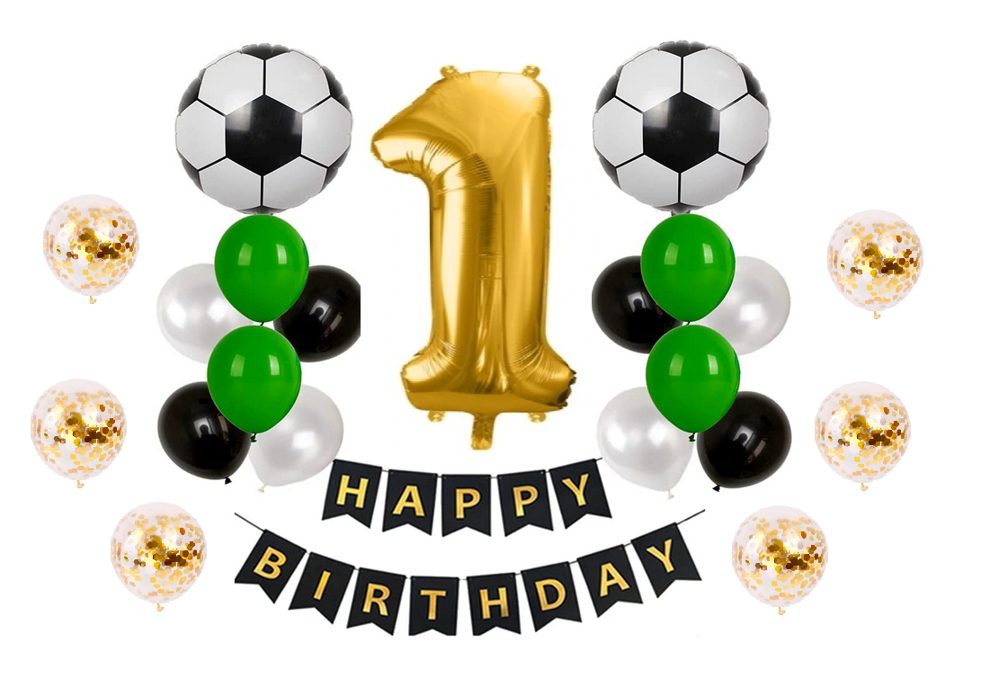 ZESTAW BALONÓW urodzinowych PIŁKA NOŻNA na 1 URODZINY dla chłopca Balony football Urodziny ROCZEK