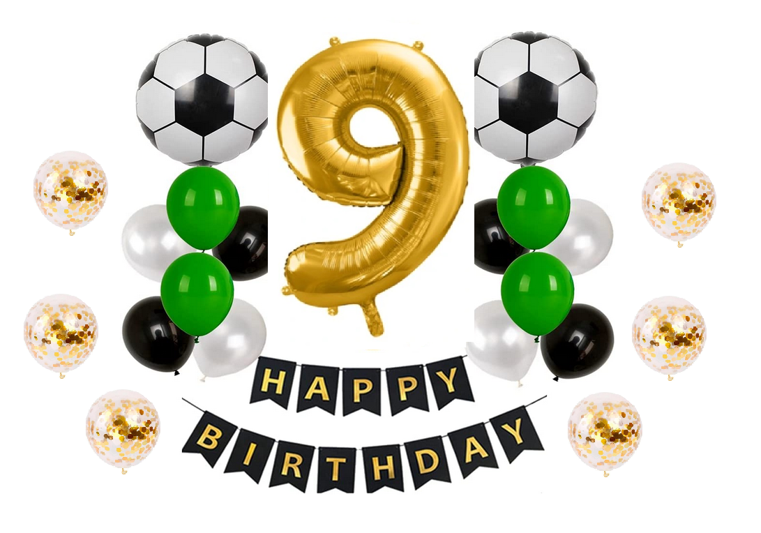 ZESTAW BALONÓW urodzinowych PIŁKA NOŻNA na 9 URODZINY dla chłopca Balony football Urodziny