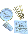 - 8szt. białych papierowych serwetek, z złotym napisem Happy Birthday - ok. 33 x 33cm.