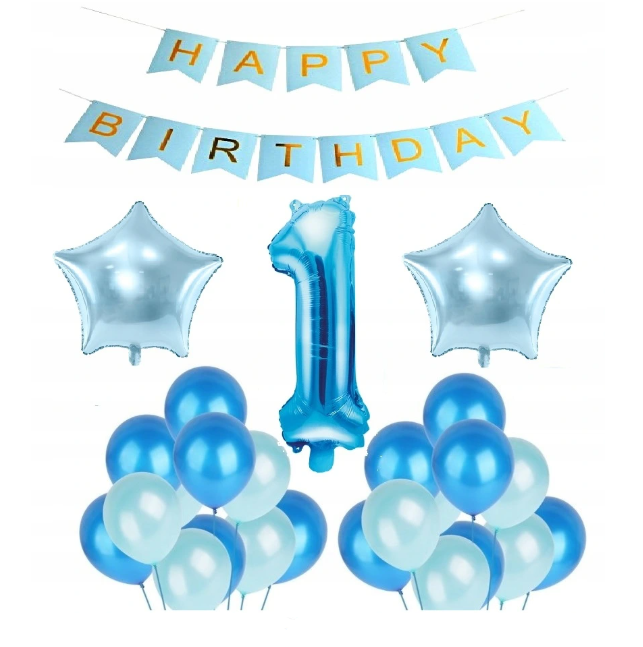 ZESTAW BALONÓW NA 1 URODZINY W NIEBIESKIM KOLORZE, dla chłopca: