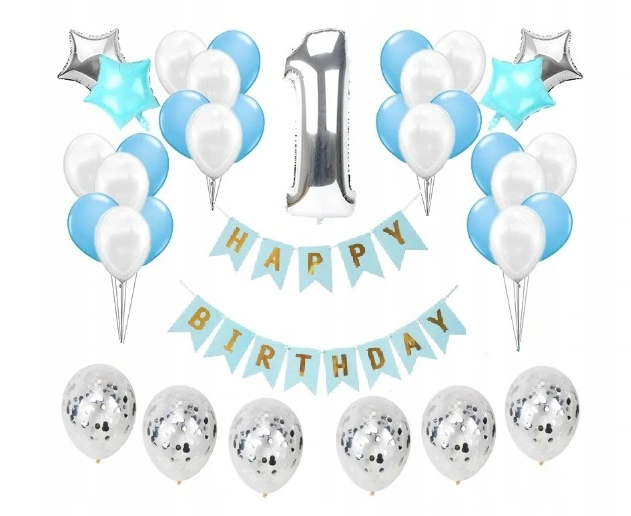 ZESTAW BALONÓW NA 1 URODZINY, dla chłopca: