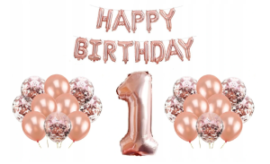 ZESTAW BALONÓW NA 1 URODZINY W KOLORZE ROSE GOLD, dla dziewczynki:
