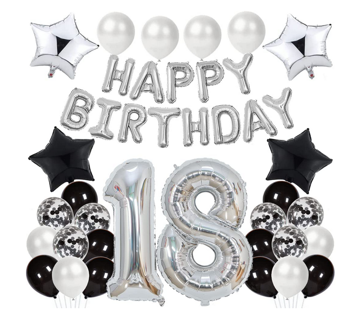 ZESTAW dekoracji na 18-ste urodziny 18STKA CZARNO-SREBRNA 27 elementów