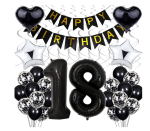 ZESTAW dekoracji na 18-ste urodziny 18STKA CZARNO-SREBRNO-ZŁOTY 27 elementów
