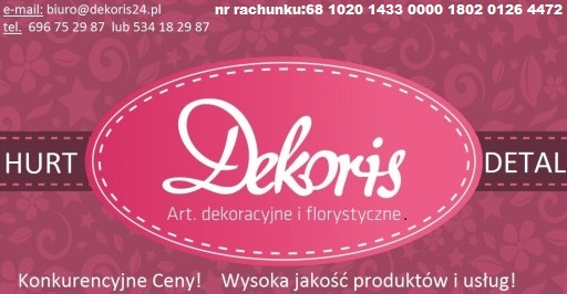 Administratorem danych osobowych jest F.H.U. DEKORIS Dorota Barańska. Przetwarzamy je w celu przesłania odpowiedzi na zapytanie. Więcej informacji dotyczących przetwarzania danych osobowych znajduje się w polityce prywatności.