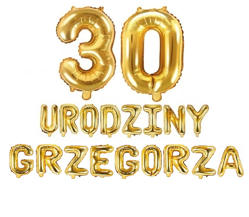 ZŁOTY NAPIS 30 URODZINY z balonów + IMIĘ 9 LITER, cyfry 30 100cm, napis 35cm; balony na 30 urodziny, 30-nastkę