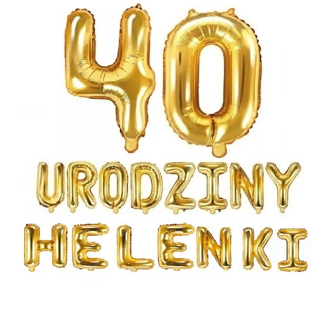 ZŁOTY NAPIS 40 URODZINY z balonów + IMIĘ 7 LITER, cyfry 40 100cm, napis 35cm; balony na 40 urodziny, 40-nastkę