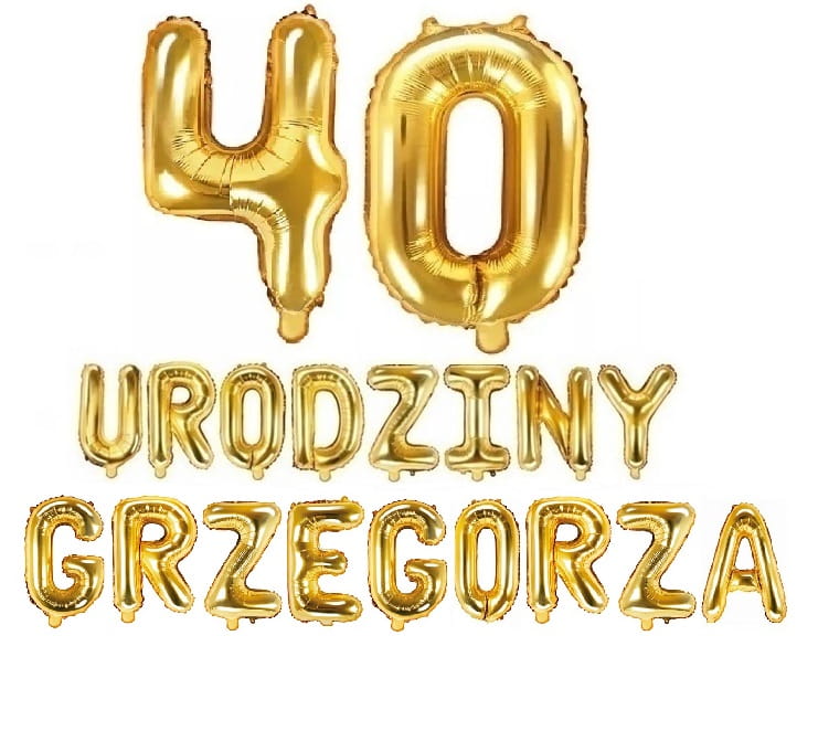 ZŁOTY NAPIS 40 URODZINY z balonów + IMIĘ 9 LITER, cyfry 40 100cm, napis 35cm; balony na 40 urodziny, 40-nastkę