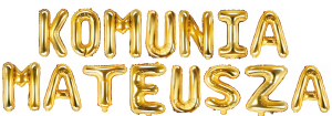Napis KOMUNIA + IMIĘ DZIECKA (8 liter) z balonów foliowych w ZŁOTYM kolorze,