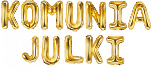 Napis KOMUNIA + IMIĘ DZIECKA (5 liter) z balonów foliowych w ZŁOTYM kolorze,