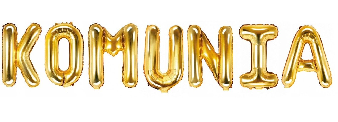 Napis KOMUNIA z balonów foliowych w ZŁOTYM kolorze
