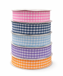 Zestaw 5x Wstążka w kratkę 25 mm (2,5 cm) 22 m – Pomarańczowa + Fioletowa + Niebieska + Granatowa + Różowa