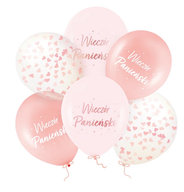 Zestaw 6szt balonów, balony na wieczór panieński konfetti serca, balony rose gold, różowe