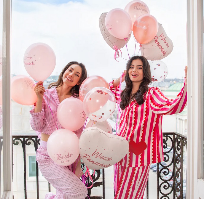- 2szt różowych pastelowych balonów z napisem: WIECZÓR PANIEŃSKI