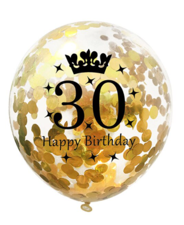 Zestaw 6szt balonów korona ZŁOTE KONFETTI, 30-stka 30 urodziny Balony z konfetti