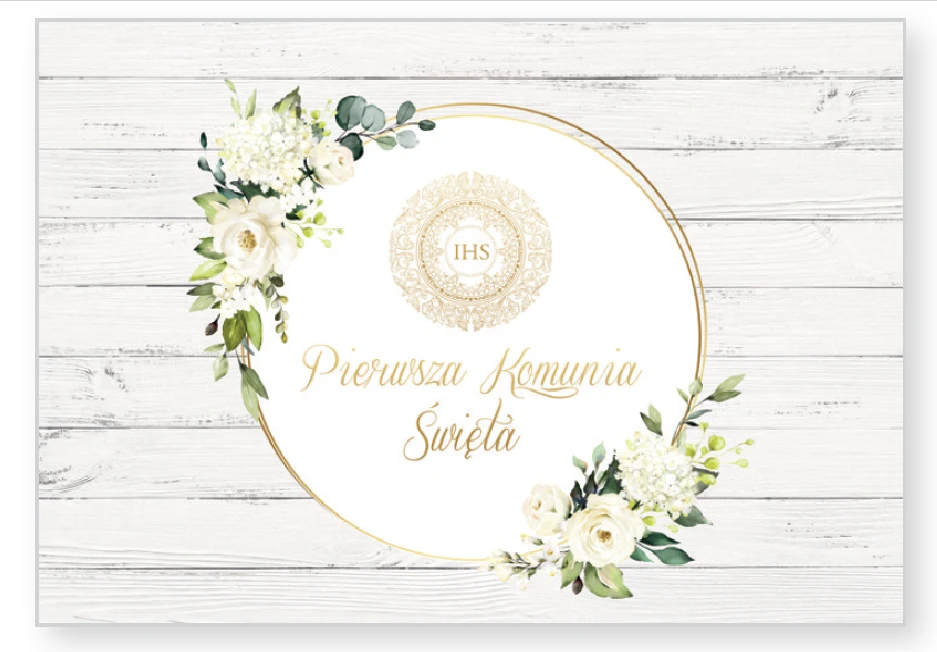 PLAKAT komunijny dekoracyjny PIERWSZA KOMUNIA ŚWIĘTA IHS dekoracja komunijna ścianka na I Komunię Świętą TK08