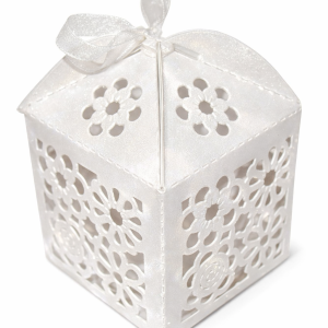 Eleganckie i subtelne pudełeczko ażurowe w klasycznym białym kolorze to doskonały wybór na wyjątkowe okazje. Jego delikatny, dekoracyjny wzór przyciąga uwagę i nadaje całości lekkości, dzięki czemu idealnie sprawdzi się jako opakowanie na słodkości lub drobne upominki dla gości. To świetny dodatek na śluby, komunie, chrzciny czy przyjęcia okolicznościowe, gdzie liczy się każdy detal.