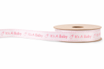 Wstążka satynowa z nadrukiem It's A Baby różowym 16 mm 3 m baby shower, chrzest