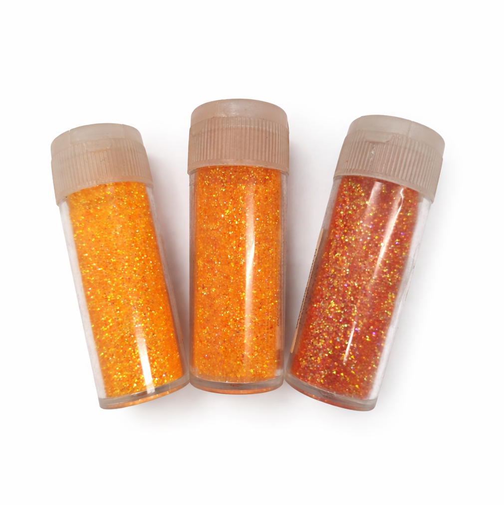 Zestaw trzech brokatów dekoracyjnych w intensywnych odcieniach pomarańczy to doskonały dodatek do dekoracji, rękodzieła oraz projektów DIY. Brokat pięknie odbija światło, tworząc efektowny, błyszczący akcent w kompozycjach florystycznych, ozdobach świątecznych czy dekoracjach stołu.